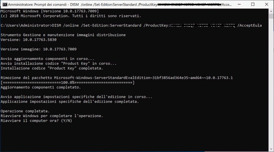 Ovviamente al posto delle X ci va il giusto product keyĀ e nellāopzione /Set-Edition: va inseritoĀ ServerStandardĀ oĀ ServerDatacenterĀ o ServerEssentialsĀ Ā a seconda dellāedizione installata.