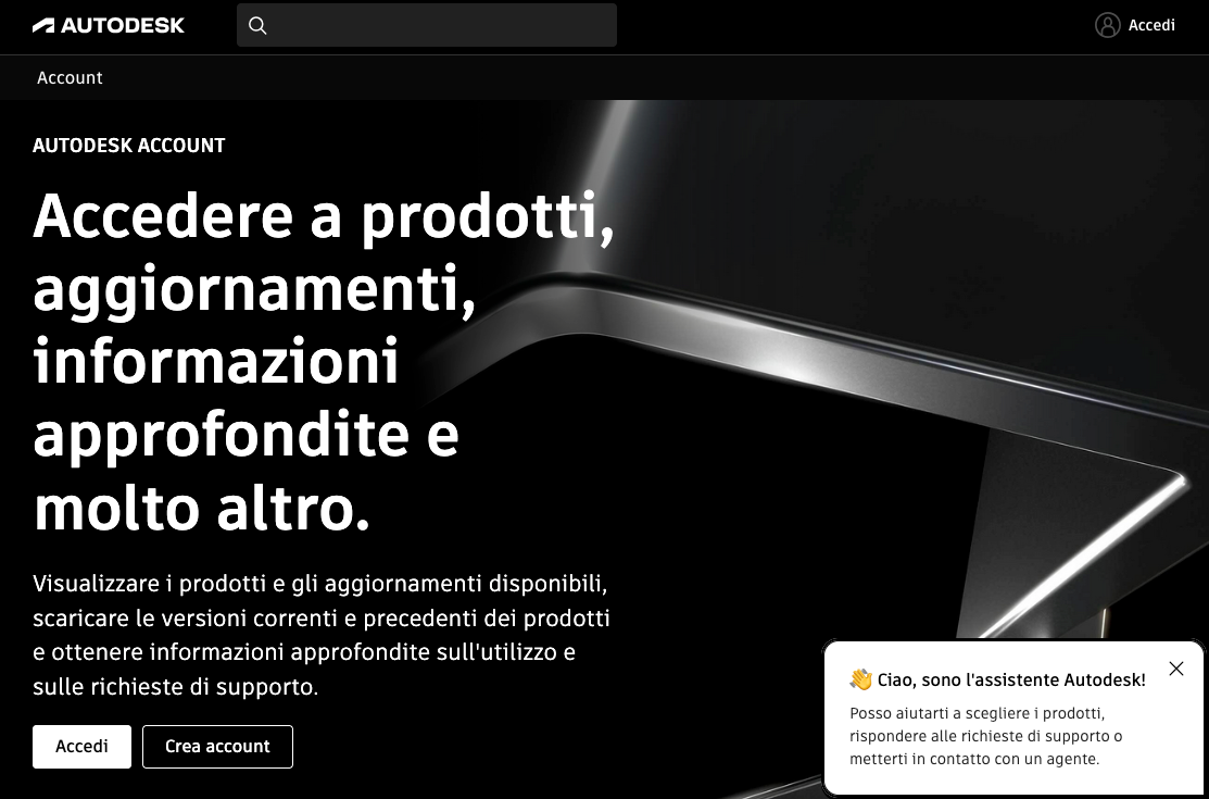 vi aprira' una finestra come in foto e dovrete cliccare sul tasto grande in alto (Accedi con ID Account Autodesk).